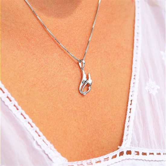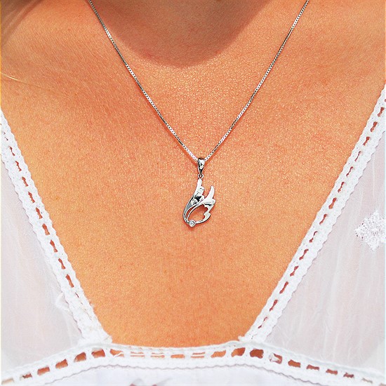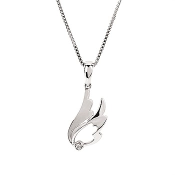 Diva Diamonds® Wing Pendant In Sterling Silver With .01 Ct. Diamond With 18" Chain